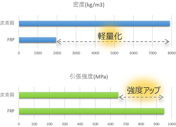 採用したFRPフレームは従来の炭素鋼鋼材製と比較し重量が1/4程度、引張強度が1.5倍のため、ユニットの総重量が軽量化され、現場での搬送労力の低減および効率化を実現することができました。